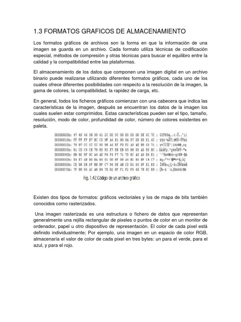 La calidad de una imagen digital viene definida por dos características: Lo determina el número de bits que almacenan la información del color de un píxel. 1 bit = 2 posibles colores (blanco. Se guarda la información de color de cada píxel de una retícula. Tijuana bc, a 3 de septiembre de 2010 formatos gráficos más comunes y sus características. El formato tiff (tag image file format) es admitido prácticamente por todas las aplicaciones de autoedición y tratamiento de imágenes. Es un formato gráfico basado en un algoritmo de compresión sin pérdida para bitmaps. Dentro de los modos de color encontramos unos cuantos que son los más comunes, predominando los modos rgb … Es capaz de utilizar canales rgb, lo que permite su modificación en programas de edición.. 1 bit = 2 posibles colores (blanco.